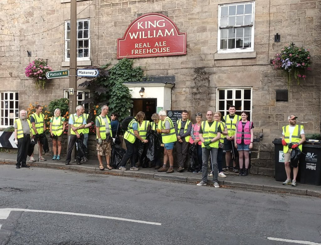 A litter pick was organised by The King William and The White Peak Distillery starting at 6pm on Tuesday 26th August. An excellent turnout of 20 people fanned out all over Milford and Makeney over the next hour, picking up litter. Villagers will be pleased to hear most litter was found outside the village boundaries! The King William very kindly then offered a free drink and nibbles afterwards for all participants.