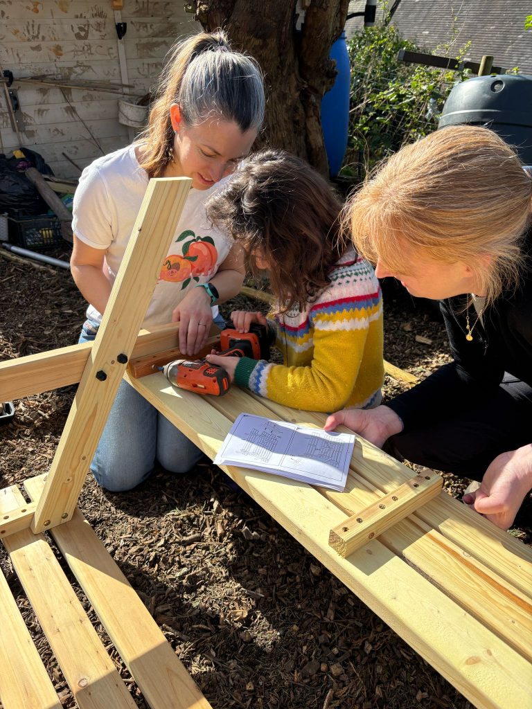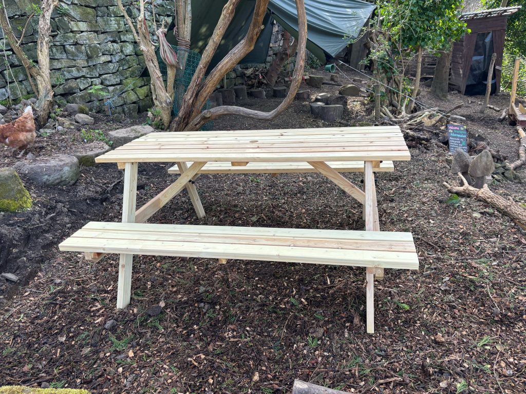 The new Forest School Leader, replacing Kate Tuck, Caroline Irwin, requested an additional bench for the children to use during Forest Schools, so one was purchased by The Greenspace and then constructed, in March. A piece of land next to the Story Telling Area was levelled and the bench installed there.