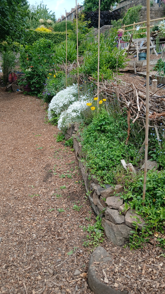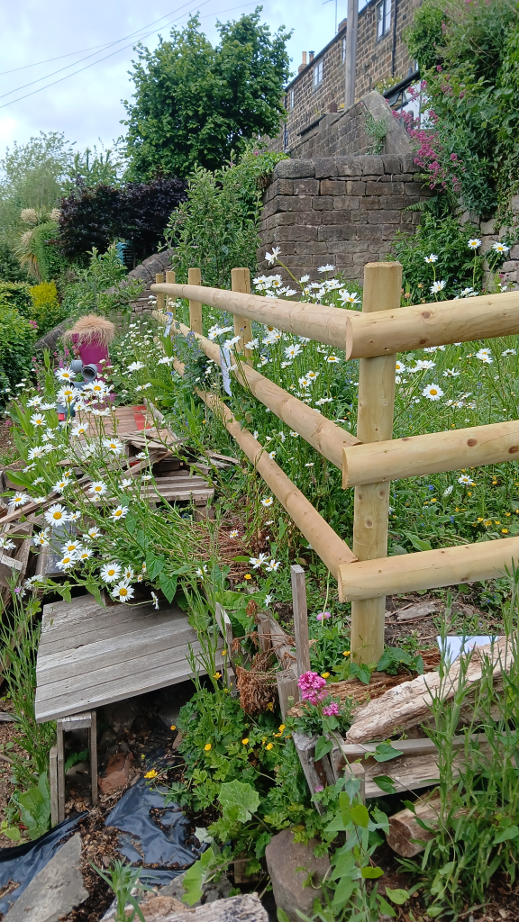 It has been quite a while since our last report (July 2024) but the Greenspace is still going strong. It is worth commenting that there is no road access to the Greenspace and every single item on it has had to be carried by hand to the site by the volunteers, up three flights of steps! In November 2024 a large batch of free pallets was delivered nearby and carried onto site.